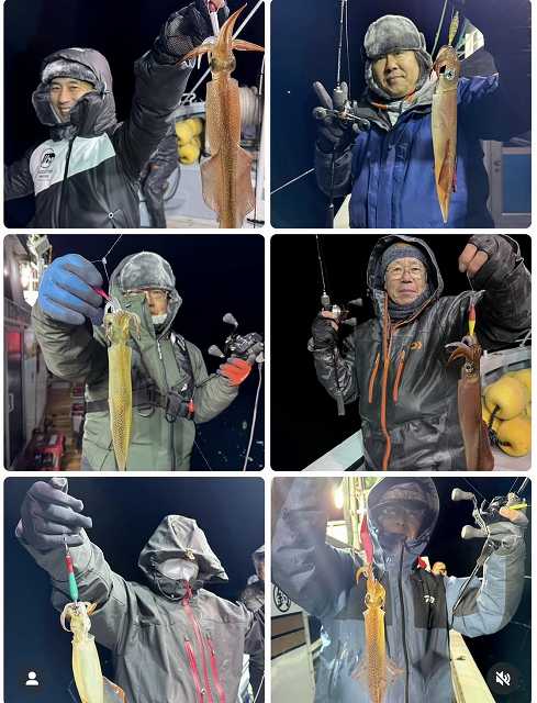 釣行日 2026年1月23日(金) 16:00〜21:00 場所岩手県 釜石市 花露辺港 荒神丸 釣り人岸波郡山インター店 早坂、穂積 釣種 イカメタル 釣果【船中】0~6 【早坂】3杯 【穂積】1杯 【お客様6名】1~