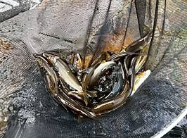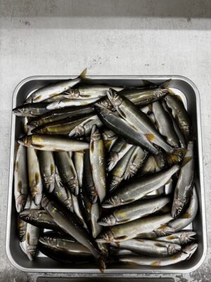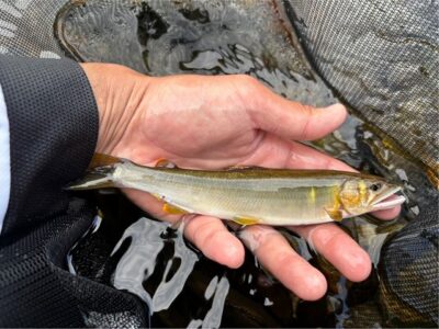 瀬肩には群れ鮎が多くサイズは10〜18㎝ほど