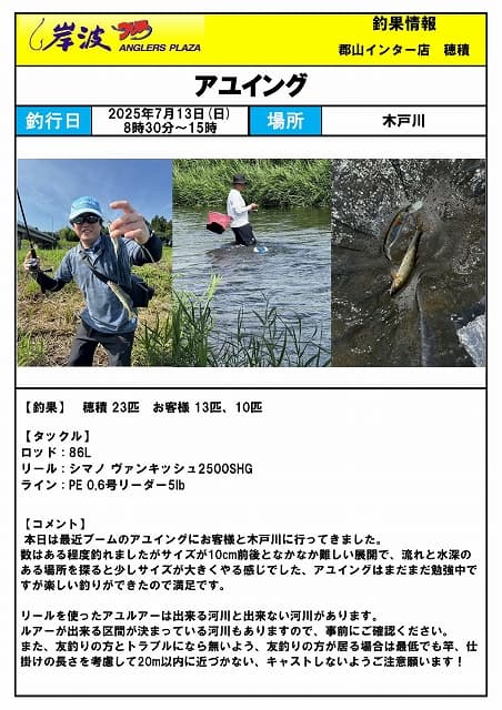 本日は最近ブームのアユイングにお客様と木戸川に行ってきました。