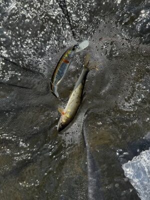 数はある程度釣れましたがサイズが10cm前後となかなか難しい展開で、流れと水深のある場所を探ると少しサイズが大きくやる感じでした、アユイングはまだまだ勉強中ですが楽しい釣りができたので満足です。