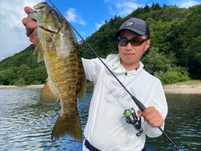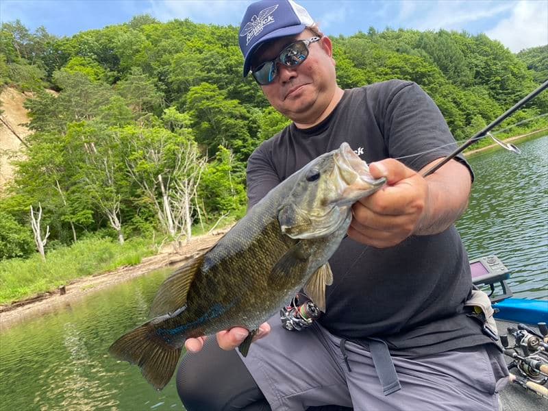減水していて非常に厳しいコンディションでしたが流れ込みが絡むシャローには良型のスモールが数多く回遊しており虫系ワームのドリフトや提灯で魚を引っ張ることができました。