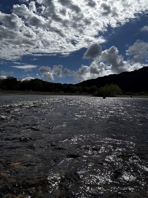 ダム放流15トン放水、ゴミもなく川の状態は良かったです。時折、強風が吹き釣りづらい状況があり苦労しました。