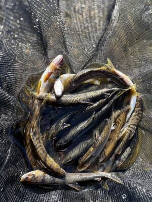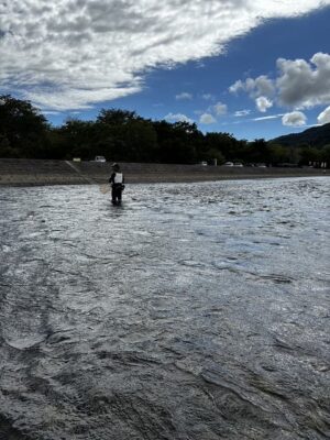 午後-上流の瀬、瀬肩、などあらゆるポイントで釣れていましたが強風の影響もあり引き抜きが上手くいかず釣果を伸ばすことができなかったです。