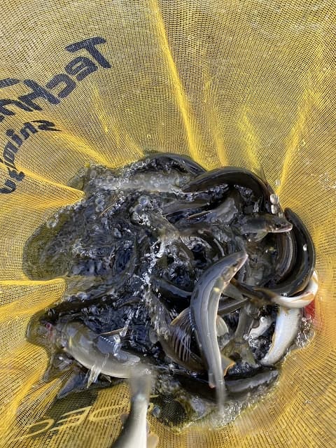 50〜100匹釣れていますので1人1個オトリカンを持参するか、引舟2個にするなど、酸欠対策が必要です。メジロアブは減ったようで1匹もいませんでした。