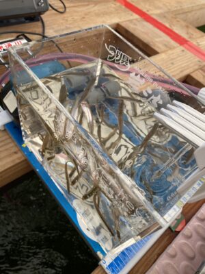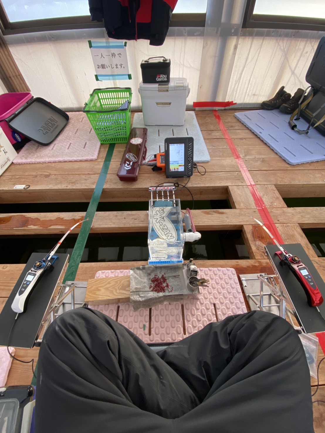 全体釣果はトップでも100匹超えならず。風が強くなり仕掛けが流れ、オマツリ多発で早上がりでした。