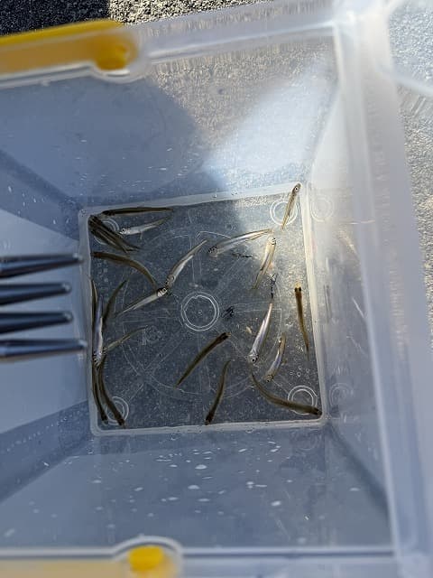 また、中田浜の桟橋に大量のワカサギがいてガイド終了後少し釣りをしてみたら結構釣れました!中田浜の桟橋で釣りも今なら楽しいと思います。