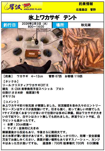 氷上ワカサギ釣り秋元湖が解禁しました。