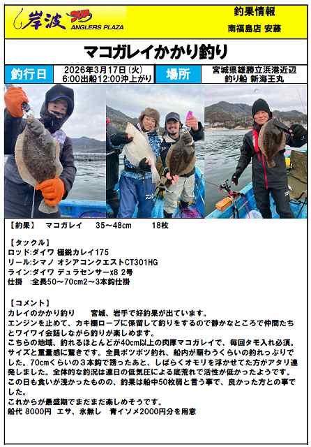 [宮城県 雄勝立浜港近辺] マコガレイかかり釣り