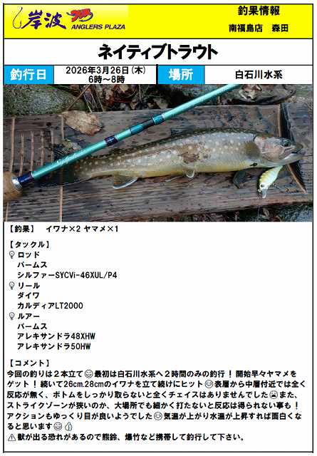 ⚠️獣が出る恐れがあるので熊鈴、爆竹など携帯して釣行して下さい。