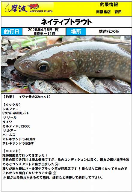 ⚠️獣が出る恐れがあるので熊鈴、爆竹など携帯して釣行して下さい。