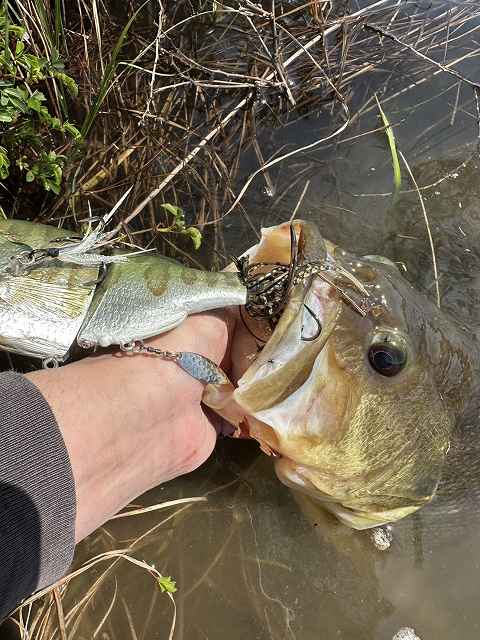 春の定番エリアで特大サイズの実績がある野池へ行くと複数のバスを確認。